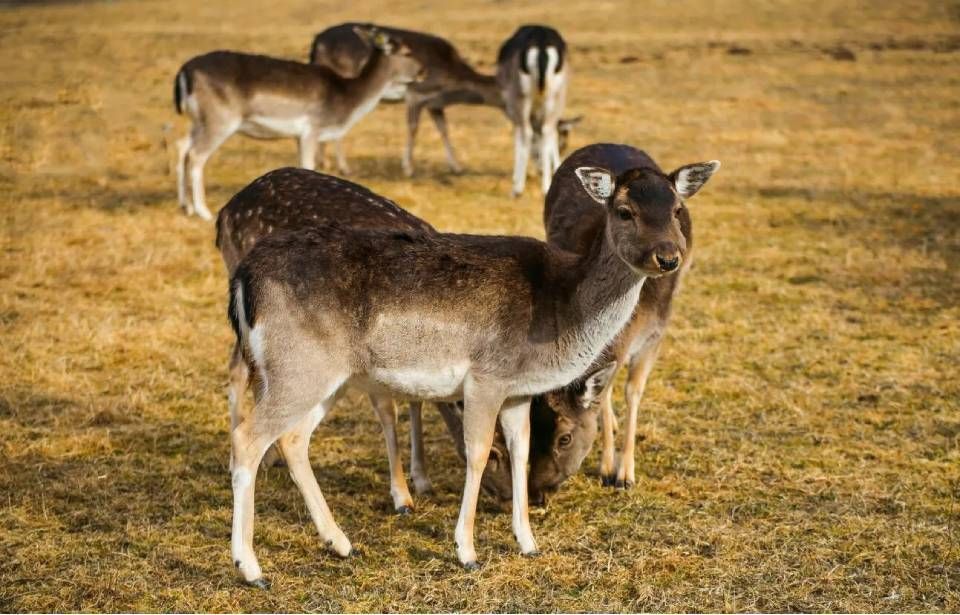 Damhirsche sind sehr genügsam und gehören zu den Wiederkäuern - sie ernähren sich hauptsächlich von Gräsern, Kräutern, Früchten, Blättern und Knospen. Sie ernähren sich im Sommer hauptsächlich durch das Grasen und im Winter durch Zufütterung von Heu.